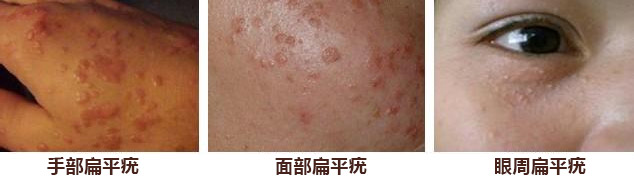 症状二:针头至米粒大或稍大的扁平丘疹,表面光滑,境界清楚,触之较硬,为浅褐或灰白、淡黄或正常皮色。