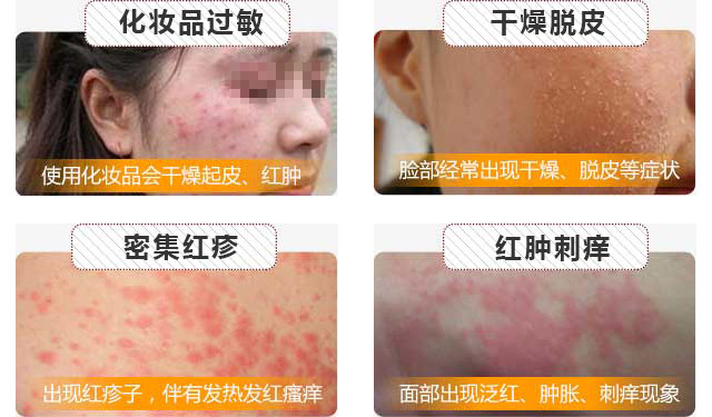 皮肤过敏症状是发痒,同时也可能会伴有红肿干屑、水泡,或病灶结痂及渗出液化等症状。偶尔可能会发生胸部紧绷、麻木、肿胀等症状。
