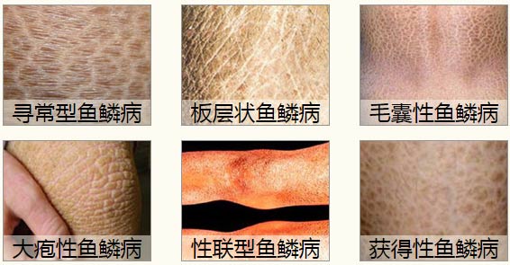 鱼鳞病的特性为四肢伸侧或躯干部发作很多枯燥、粗糙状如鱼鳞、有深重斑纹等,常见的鱼鳞病有以下几种类型: